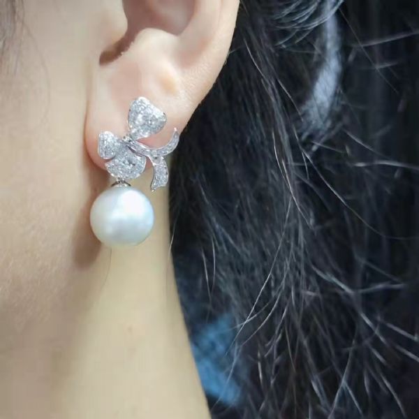 豪华珍珠耳环 BACK E01988 14K金重: 2.67克 锆石:15948 18K金重: 3.2克 锆石:20706 钻+玫瑰石:51835 配珠:12.5MM 钻石重:1.032CT 石头资料:0.8-10 0.9-36 1.0-34 1.1-52 1.2-24 玫瑰1.8-2 2.1-2 2.8*2.0-4