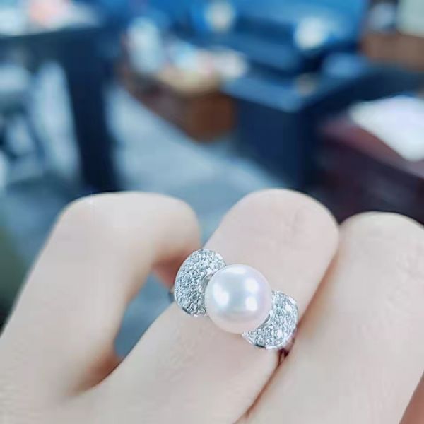 简约珍珠戒指系列 BACK R01325 14K金重: 3.69克 锆石:15720 18K金重: 4.43克 锆石:22327 单反钻:34409 I2足反:37056 配珠:7MM 钻石重:0.321CT,石头资料:0.9-8 1.0-9 1.1-14 1.2-20