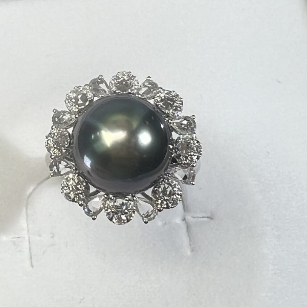 豪华珍珠戒指系列 BACK R01772 14K金重: 4.4克 锆石:28999 18K金重: 5.3克 莫桑+玫瑰切白蓝宝:33999 锆石:39999 莫桑+玫瑰切白蓝宝:49999 11.4MM 0.7-16 0.9-16 1.3-8 玫瑰切工1.8-8(0.22CT) 玫瑰切工2*3-8(0.428CT)