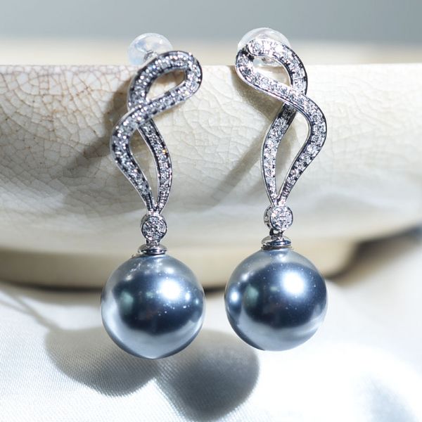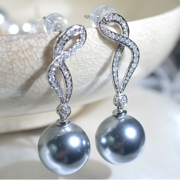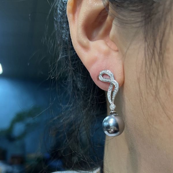 豪华镶嵌珍珠耳环 BACK E02867 14K金重: 2.1克 锆石:15812 18K金重: 2.5克 锆石:21159 钻石:32994 珠位:12MM 石重0.378CT 0.7-2 0.8-4 0.9-14 1.0-22 1.1-22 1.2-8