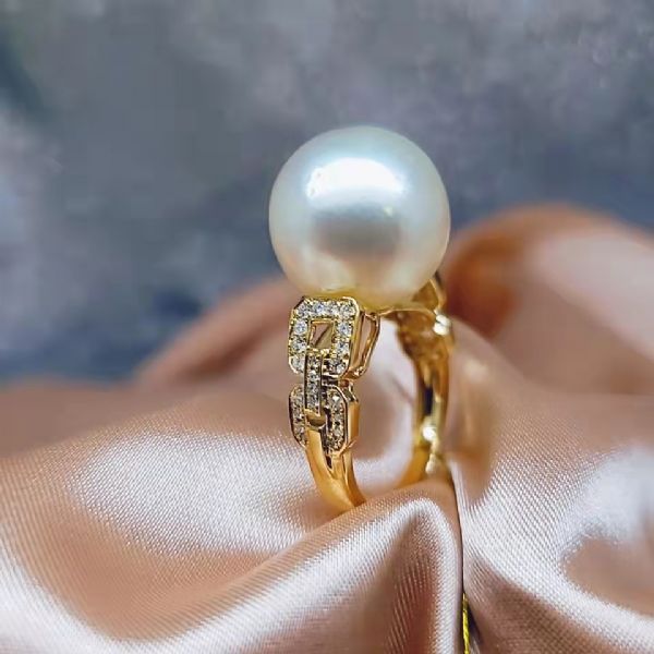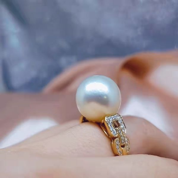 几何扣珍珠戒指 BACK R01290 14K金重: 3克 锆石:12612 18K金重: 3.6克 锆石:17976 I2足反:27670 配珠:15MM 钻石重:0.264CT 石头资料:0.9-20 1.1-4 1.2-20