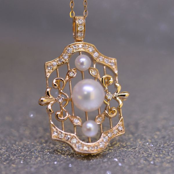 14K珍珠吊坠托18K钻石