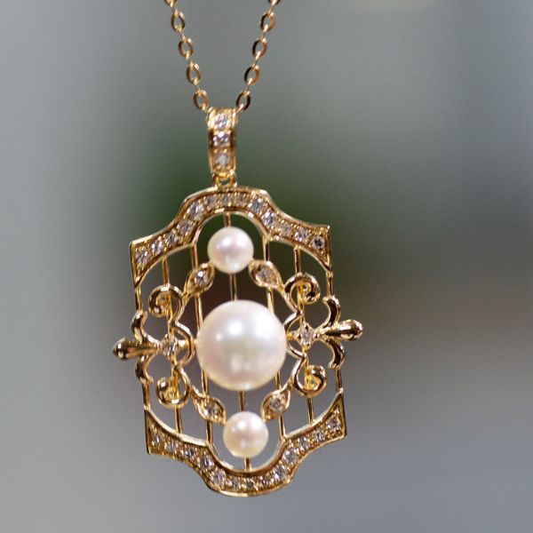 18K钻复古轻奢风珍珠吊坠