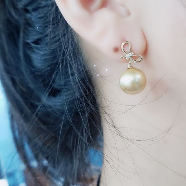 18K钻素金推沙珍珠耳环