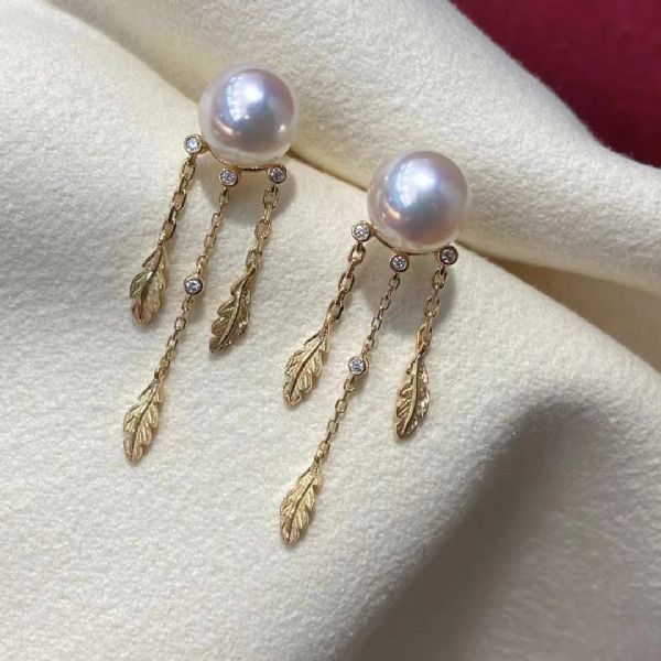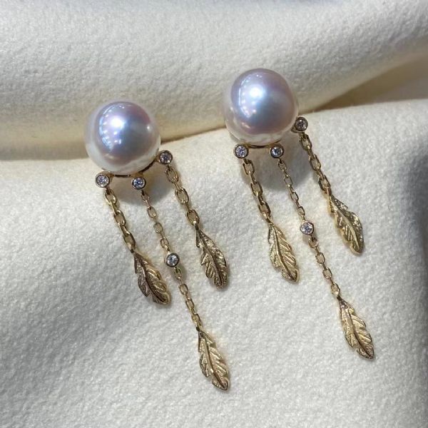 18K钻素金推沙珍珠耳环
