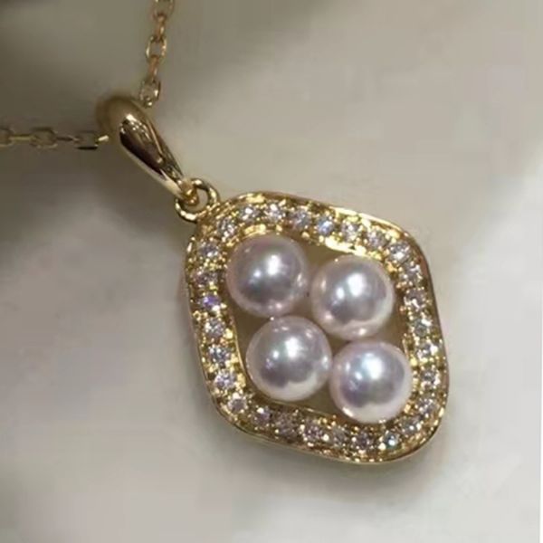 14K珍珠吊坠托18K钻石